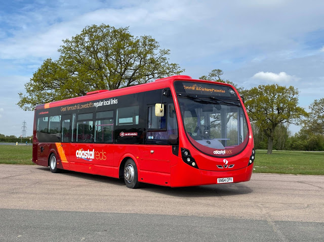Picture above is one of four new Sanders Coaches Volvo B8RLE/MCV Evora single deckers working on the "Coasthopper" service along the A149 coast road near Cley-next the-Sea.Picture taken on 8th July 2021. (Picture courtesy of East Norfolk Bus Blog) |